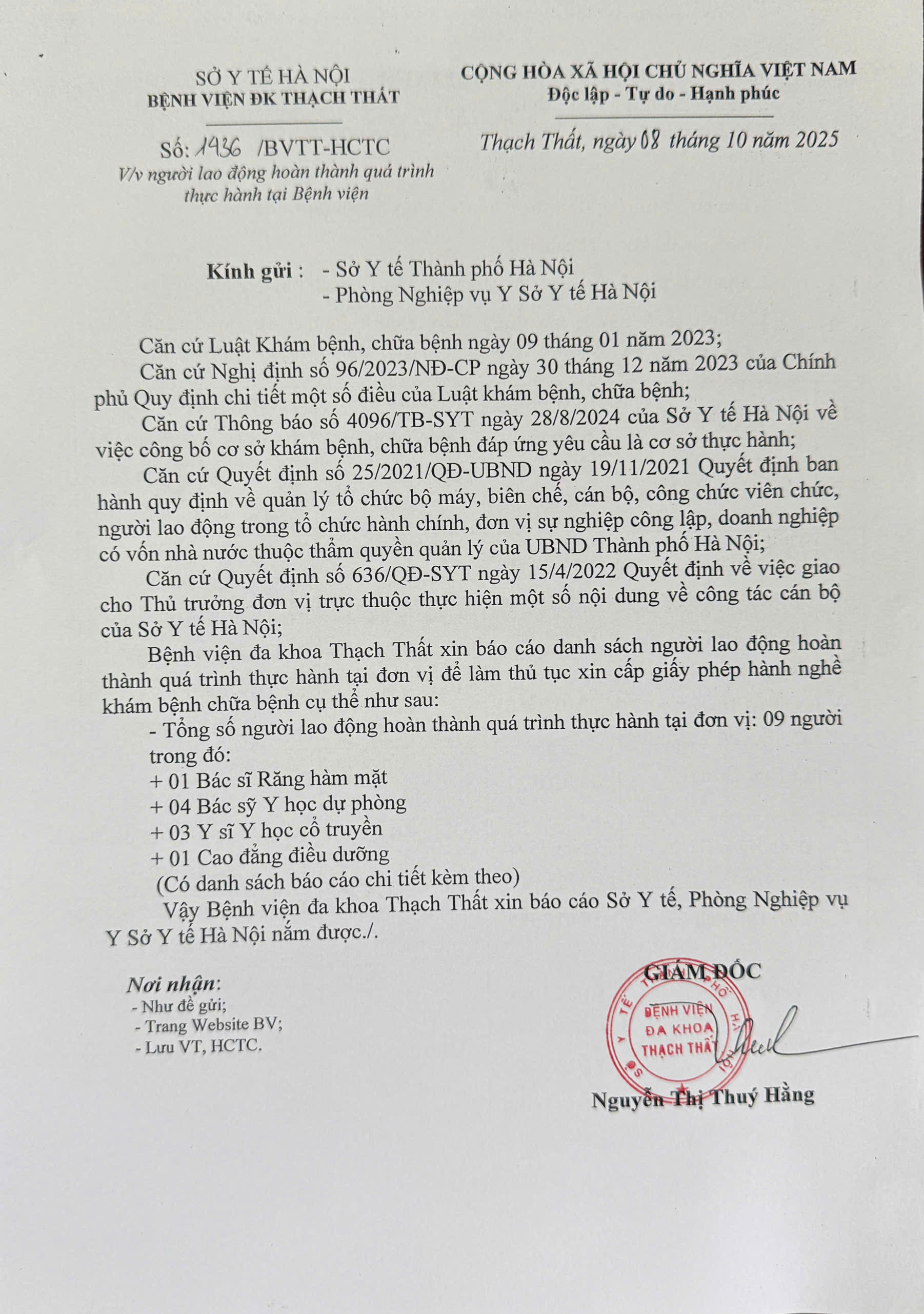 Thông báo về việc tiếp nhận nhân viên y tế đến thực hành chuyên môn tại BV T10/2025