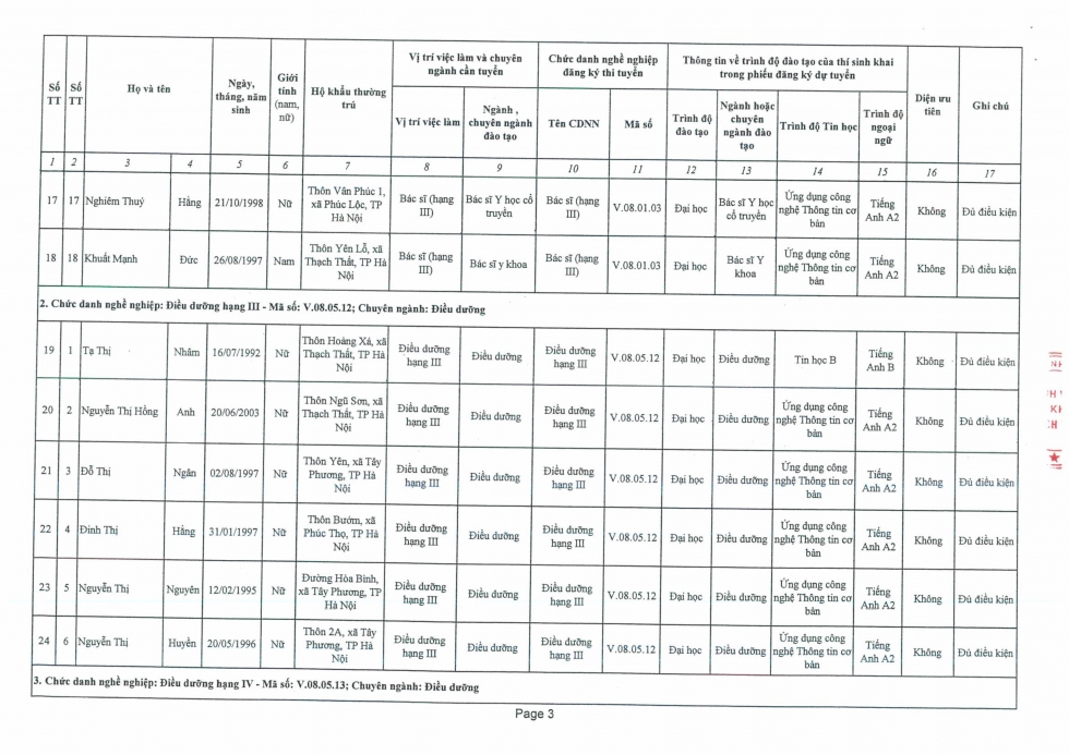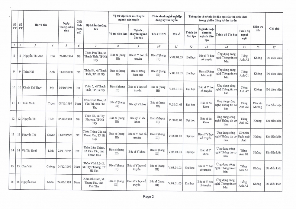 Quyết định phê duyệt danh sách thí sinh đủ điều kiện và không đủ điều kiện tham dự kỳ tuyển dụng viên chức vào làm việc tại Bệnh viện đa khoa Thạch Thất năm 2025