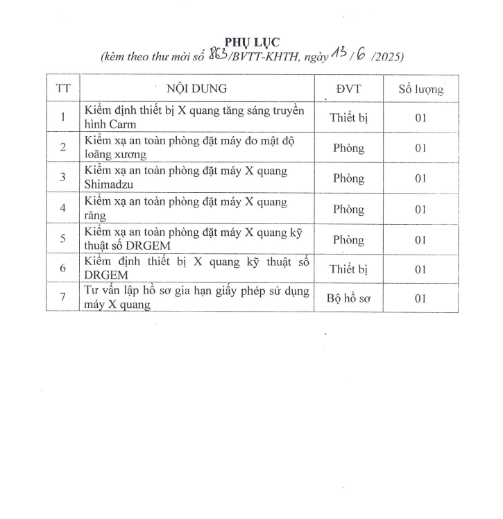 Thư mời chào giá divhj vụ và cung cấp TTBYT 1006