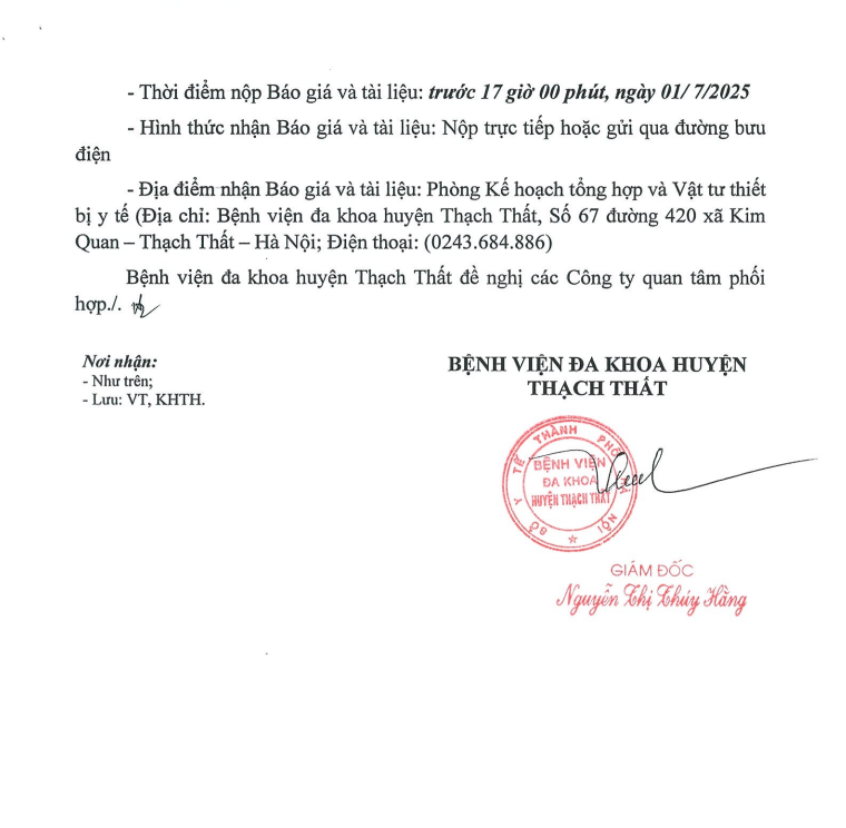 Thư mời báo giá: gói thầu sửa chữa hệ thống số hóa X Quang kỹ thuật số CR của bệnh viện đa khoa huyện Thạch Thất