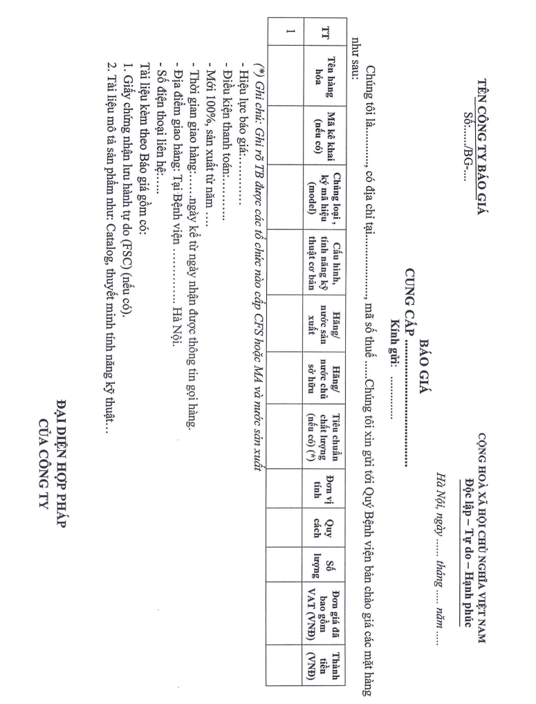 Chào giá dịch vụ và cung cấp trang thiết bị y tế 807
