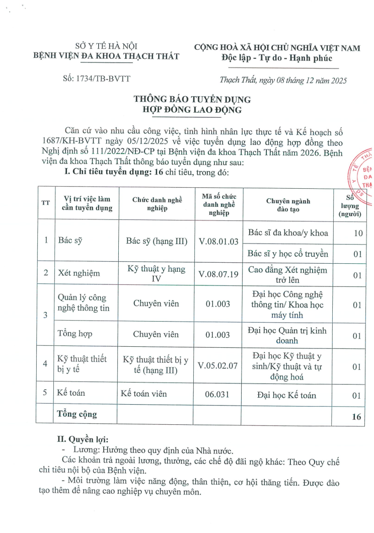 THÔNG BÁO TUYỂN DỤNG HỢP ĐỒNG LAO ĐỘNG 2133