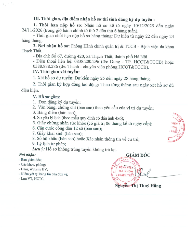 Thông báo về việc tiếp nhận nhân viên y tế đến thực hành chuyên môn tại BV T10/2025