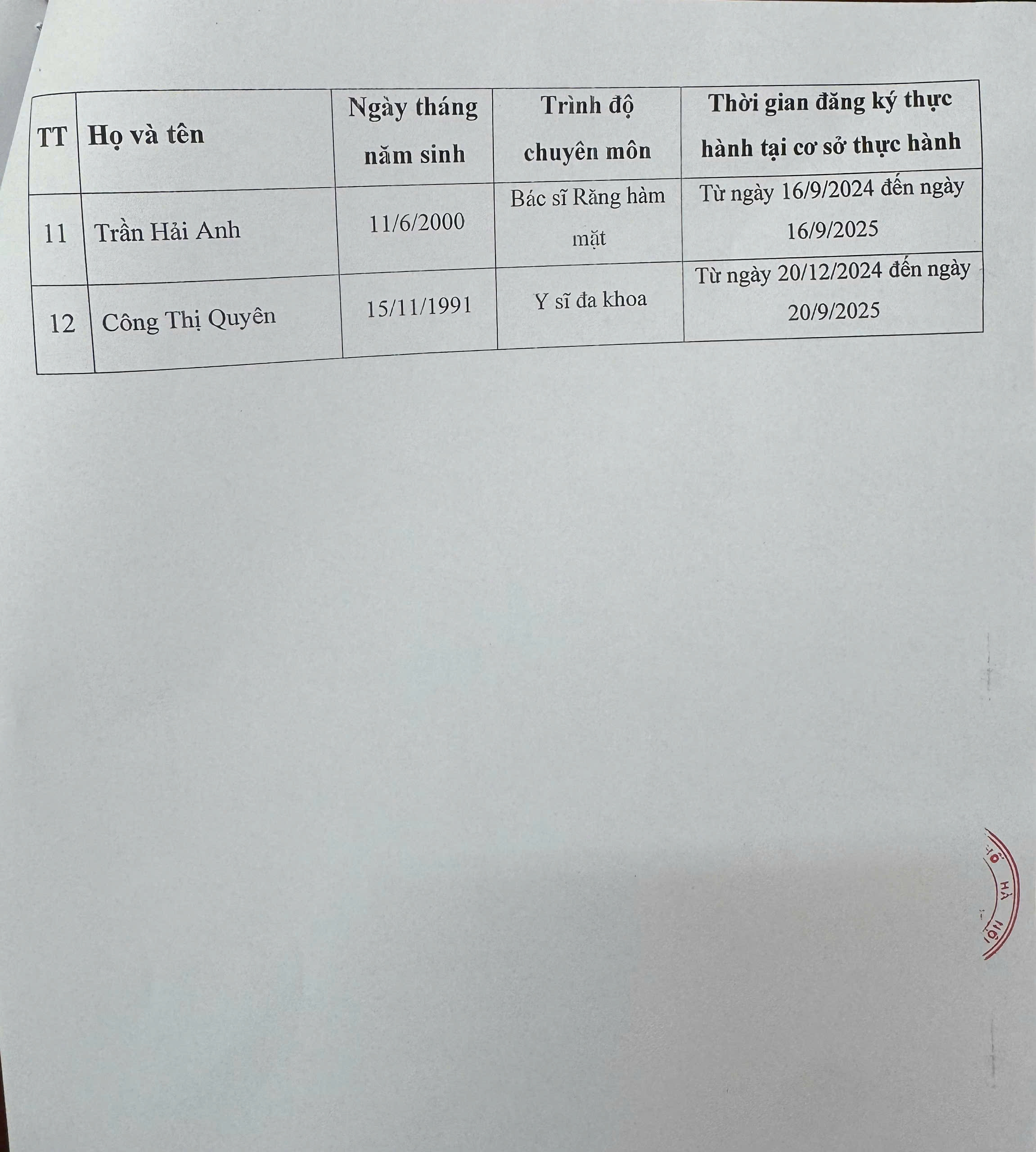 THÔNG BÁO TIẾP NHẬN NHÂN VIÊN Y TẾ ĐẾN THỰC HÀNH THÁNG 9/2025