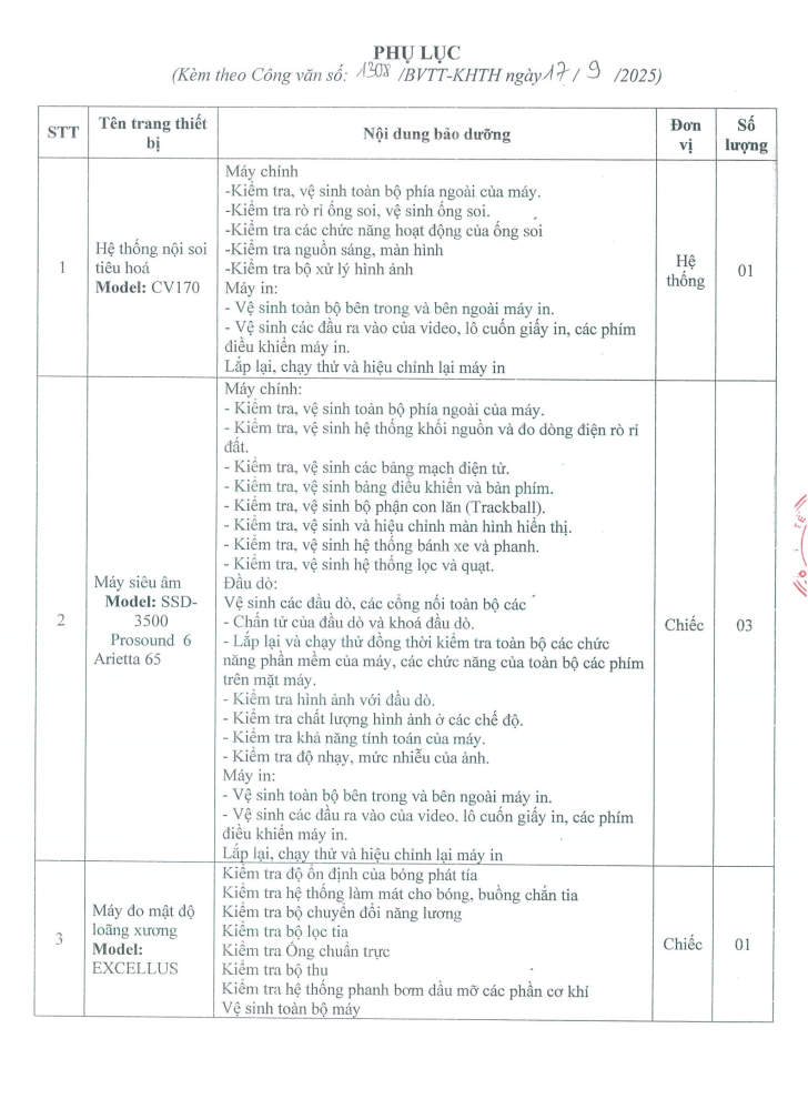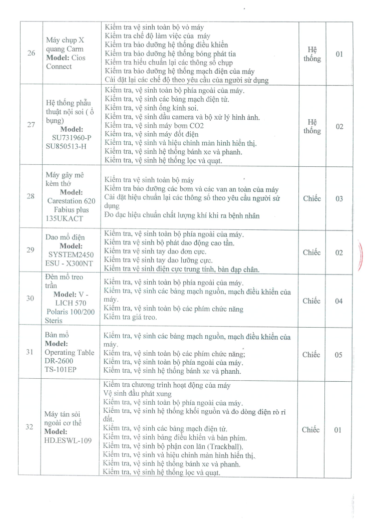 Thư mời chào giá bảo dưỡng thiết bị phòng mổ 1959