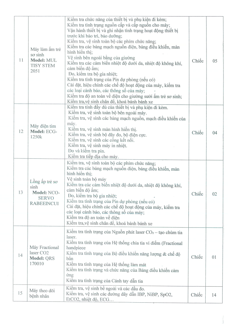 Thư mời báo giá gói thầu "Bảo dưỡng định kỳ trang thiết bị y tế năm 2024"