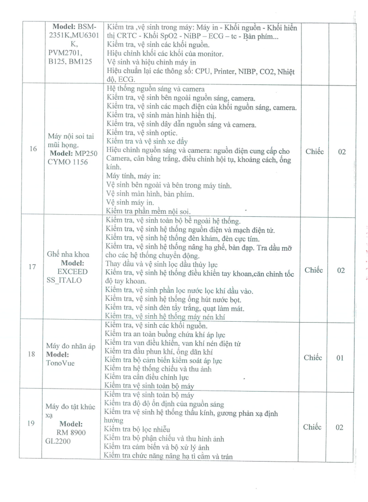 Chào giá dịch vụ và cung cấp trang thiết bị y tế 807