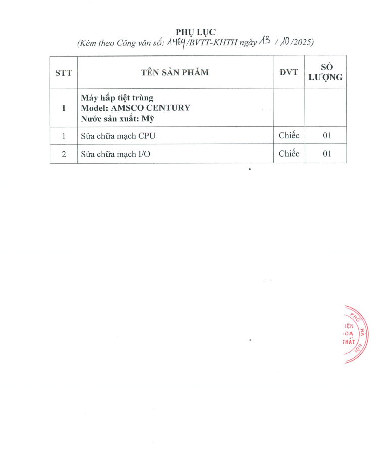 Thư mời chào giá bảo dưỡng thiết bị phòng mổ 1959