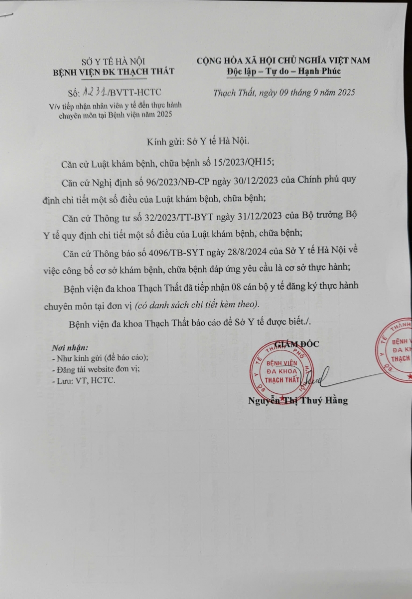 Thông báo về việc tiếp nhận nhân viên y tế đến thực hành chuyên môn tại BV T10/2025