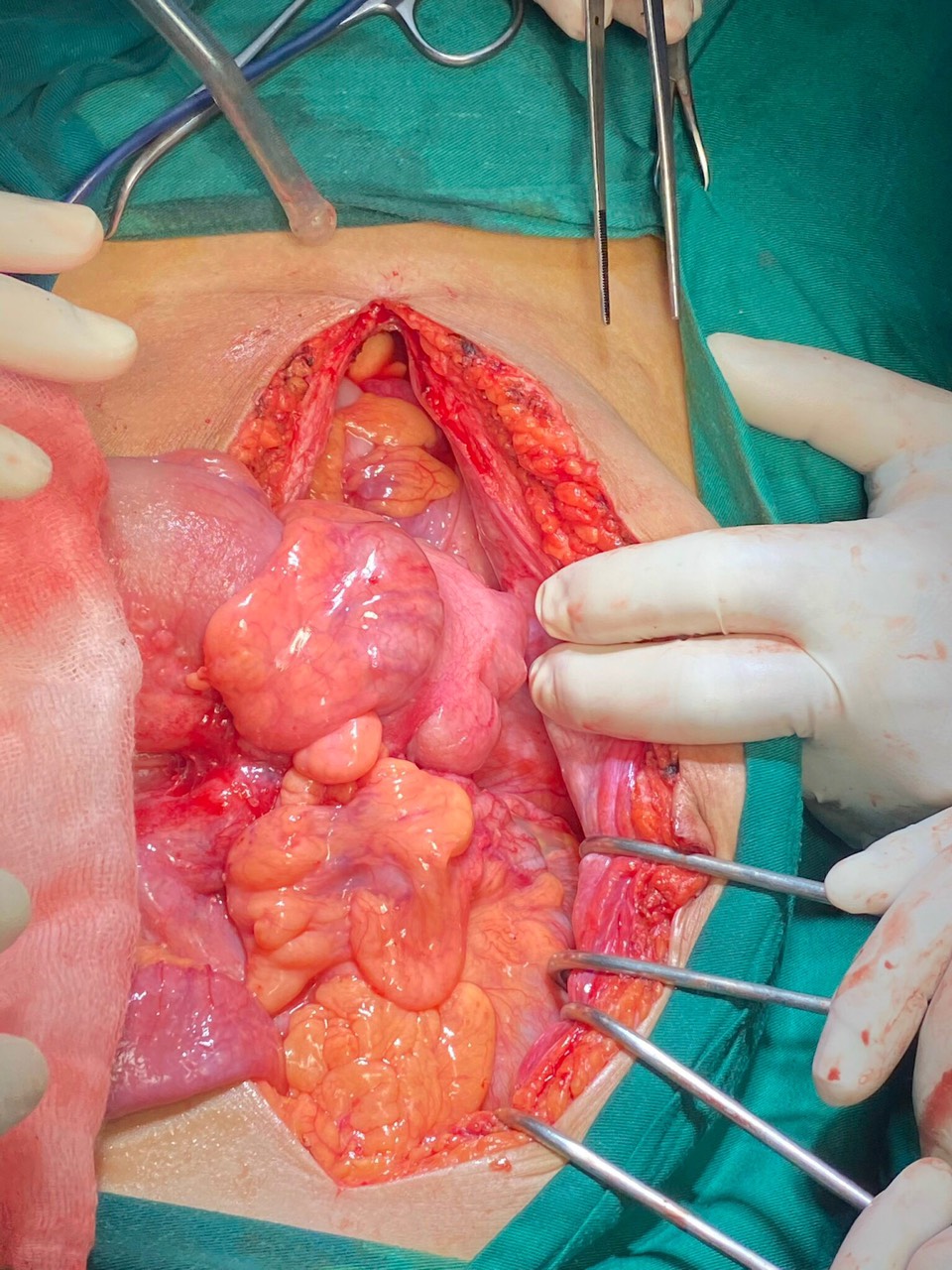 Bệnh nhân nhanh chóng được đưa lên phòng mổ. Trong quá trình phẫu thuật sau khi thám sát phát hiện ruột thừa viêm mủ, bằng kinh nghiệm và sự cẩn thận tỉ mỉ, bác sỹ Phức kiểm tra toàn bộ ổ bụng và phát hiện có một khối u tại đại tràng phải thể vòng nhẫn gây nên tình trạng bán tắc ruột của bệnh nhân, khối u dính vào niệu quản phải và phần D2 – D3 tá tràng phía sau phúc mạc .