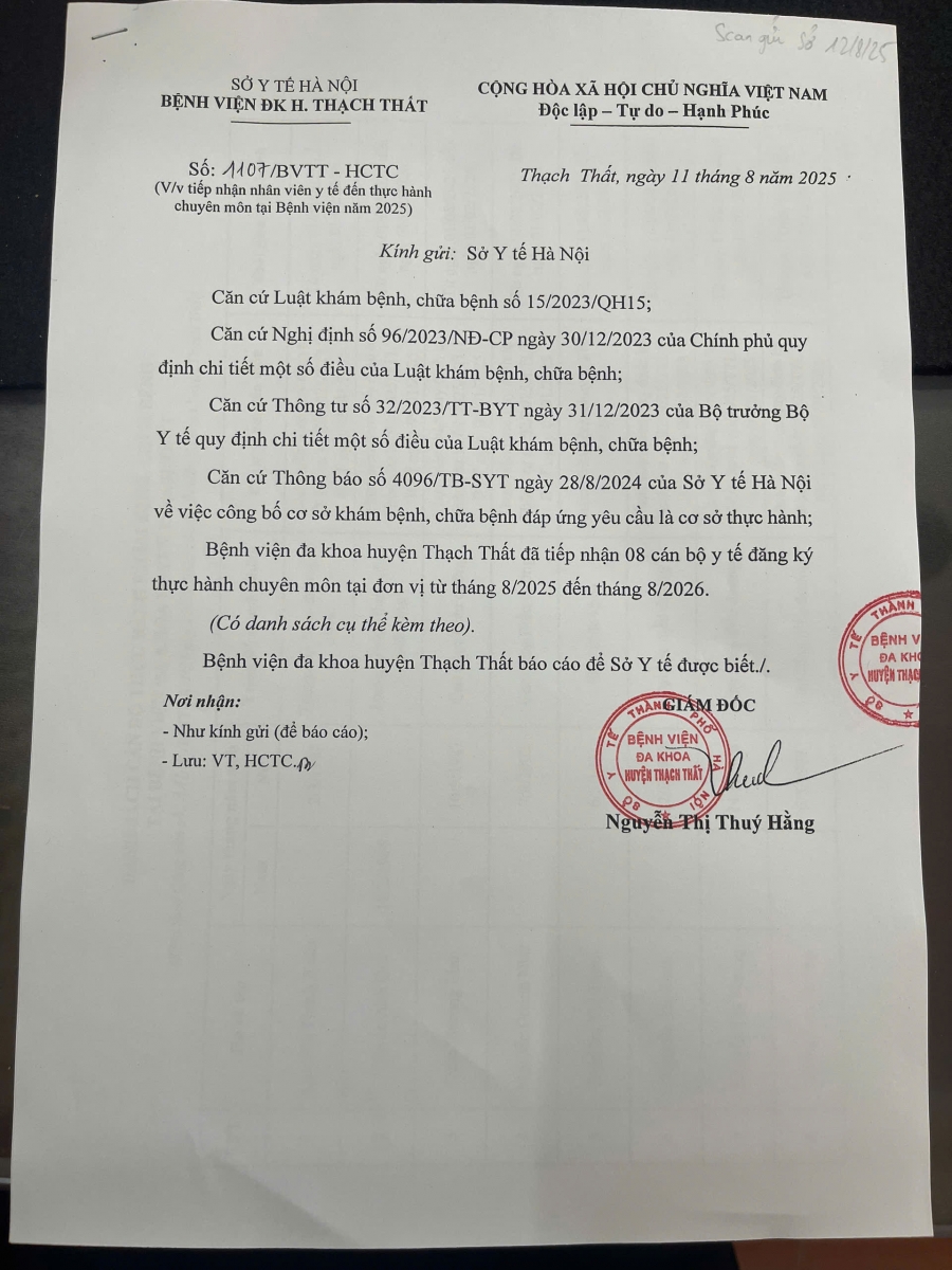 Thông báo về việc tiếp nhận nhân viên y tế đến thực hành chuyên môn tại BV T10/2025