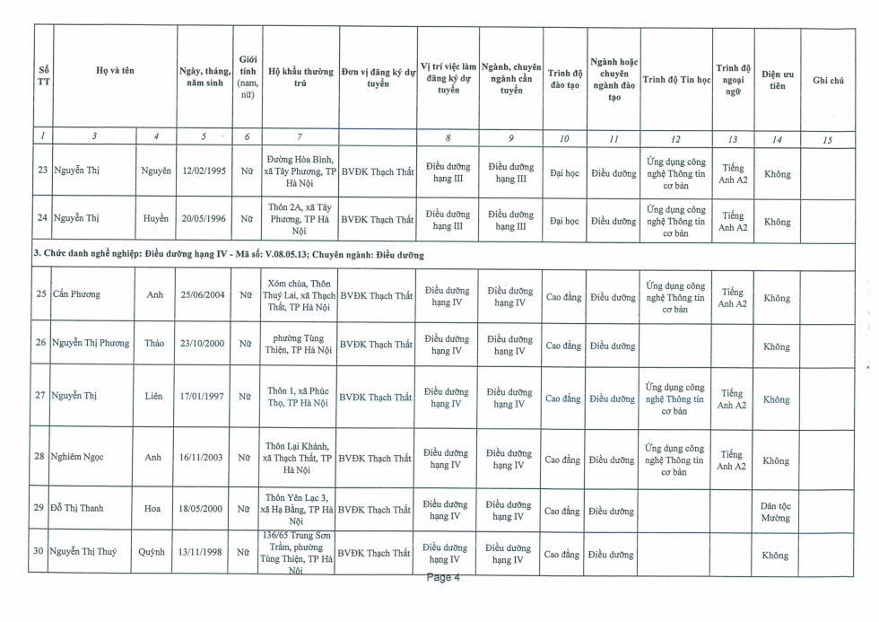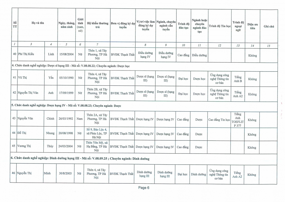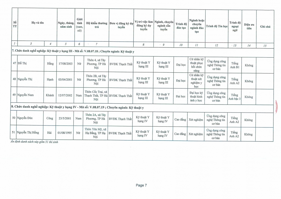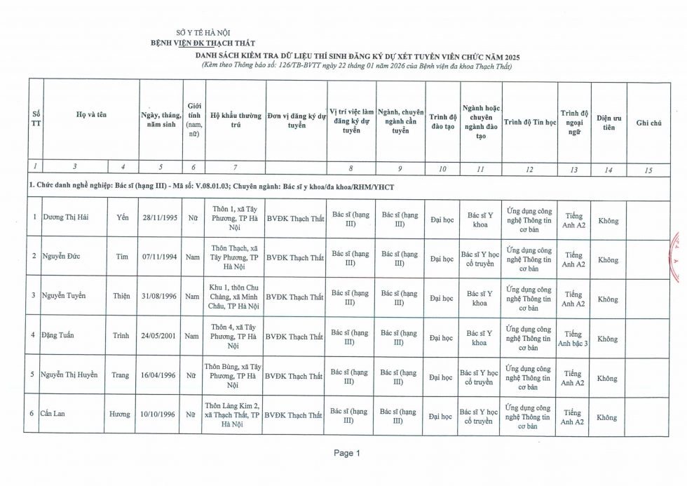 Quyết định phê duyệt danh sách thí sinh đủ điều kiện và không đủ điều kiện tham dự kỳ tuyển dụng viên chức vào làm việc tại Bệnh viện đa khoa Thạch Thất năm 2025