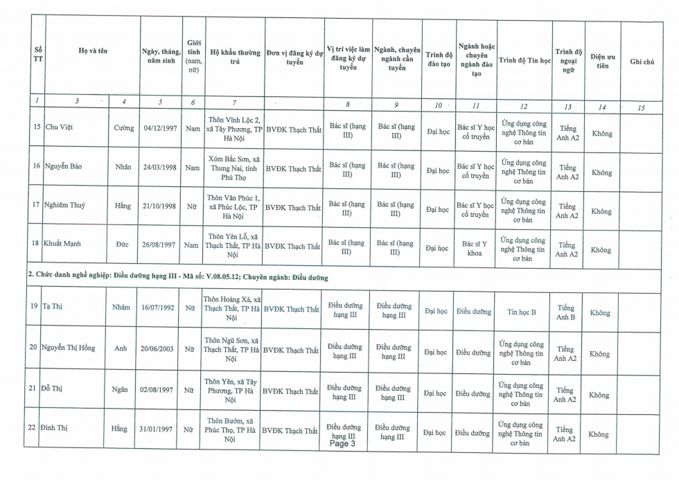 TB kiểm tra dữ liệu đăng ký tuyển dụng viên chức của Bệnh viện đa khoa Thạch Thất