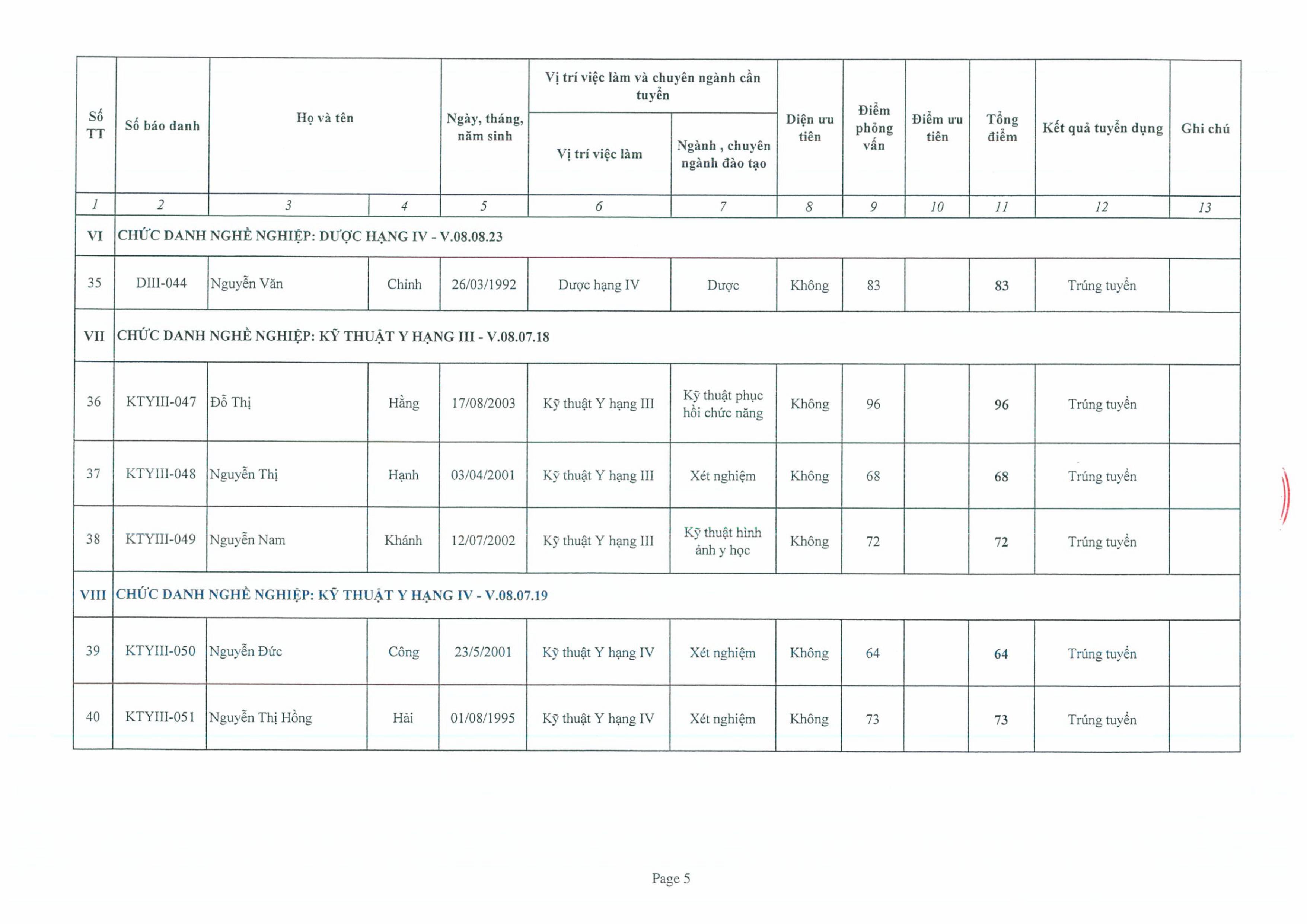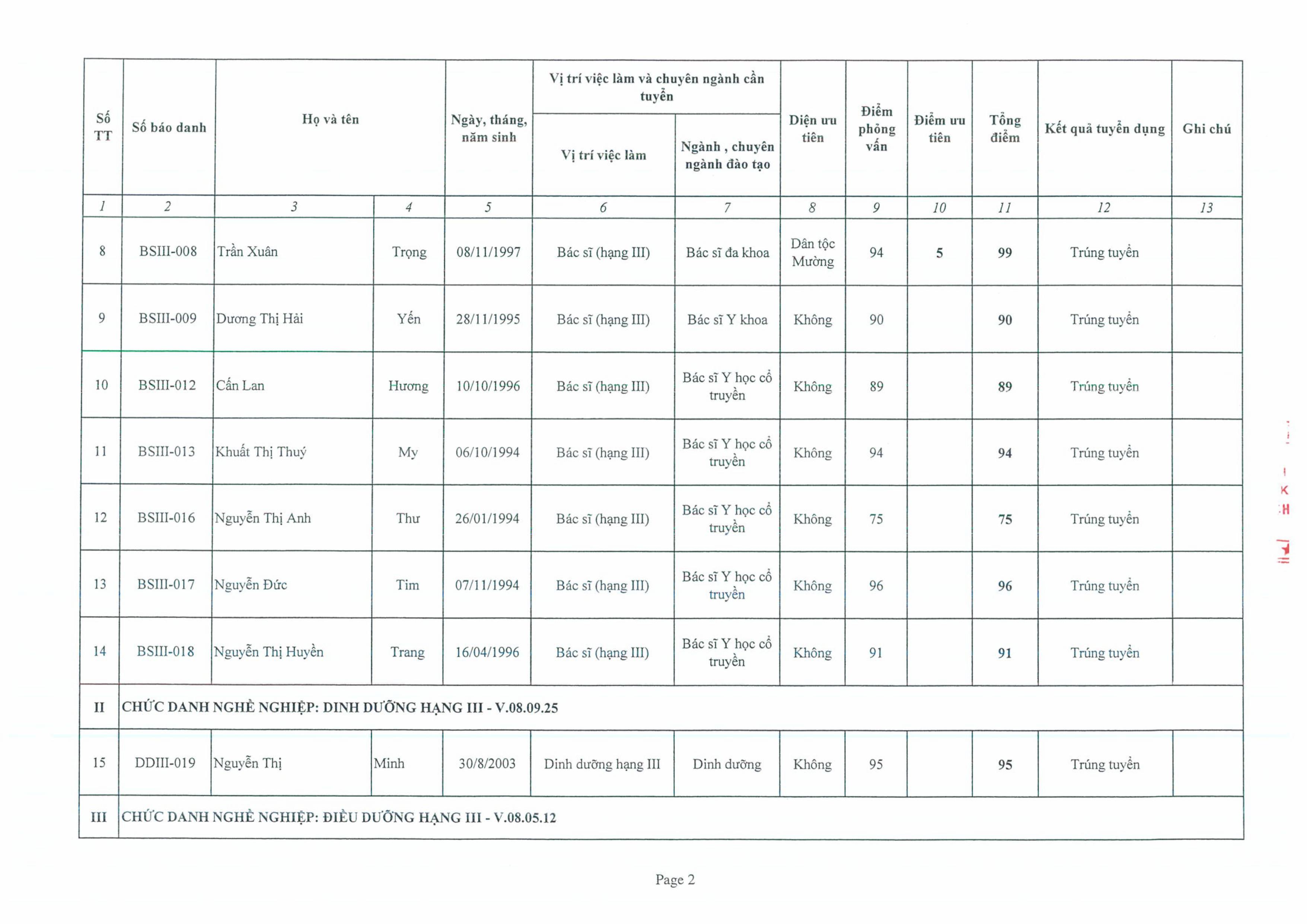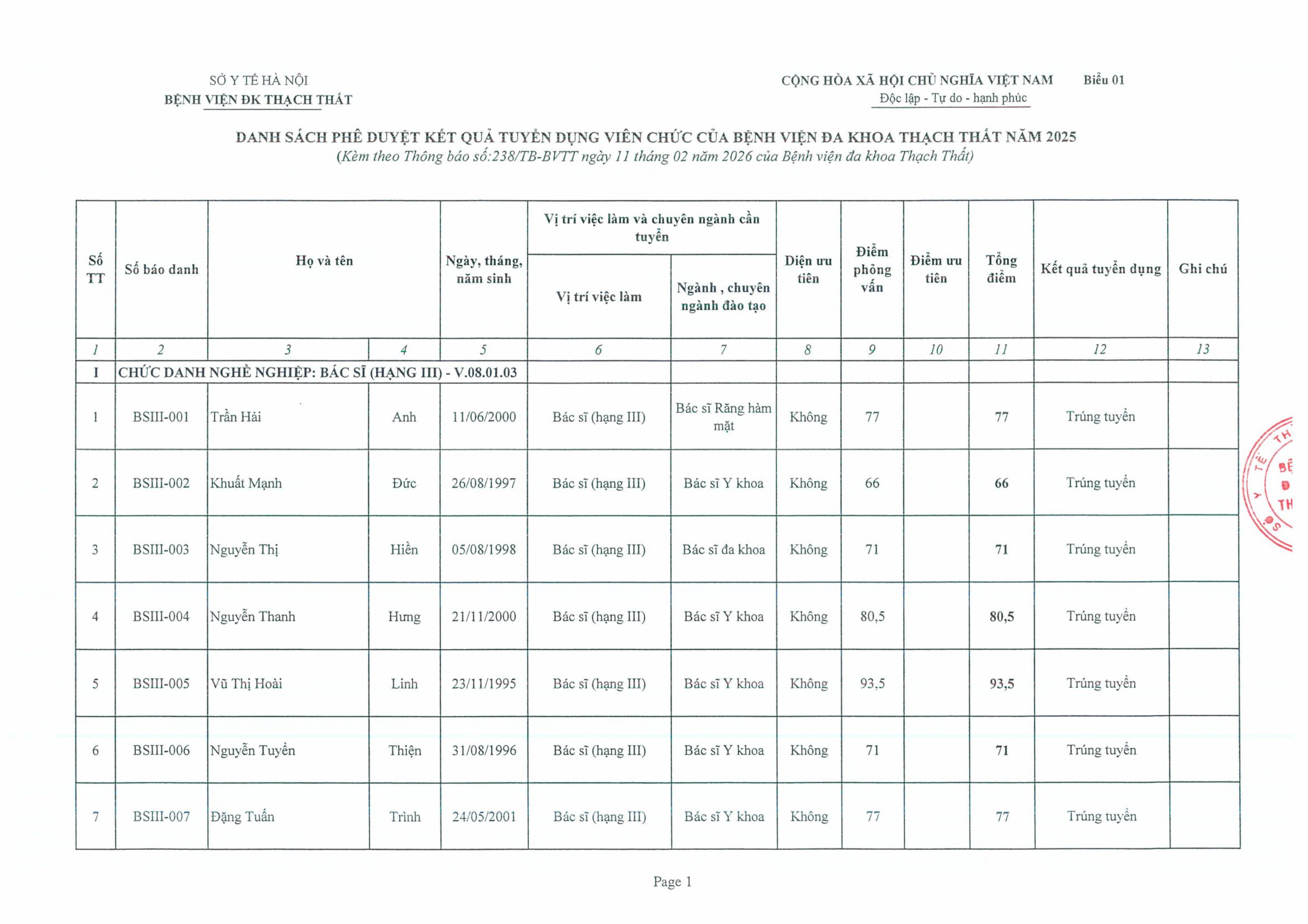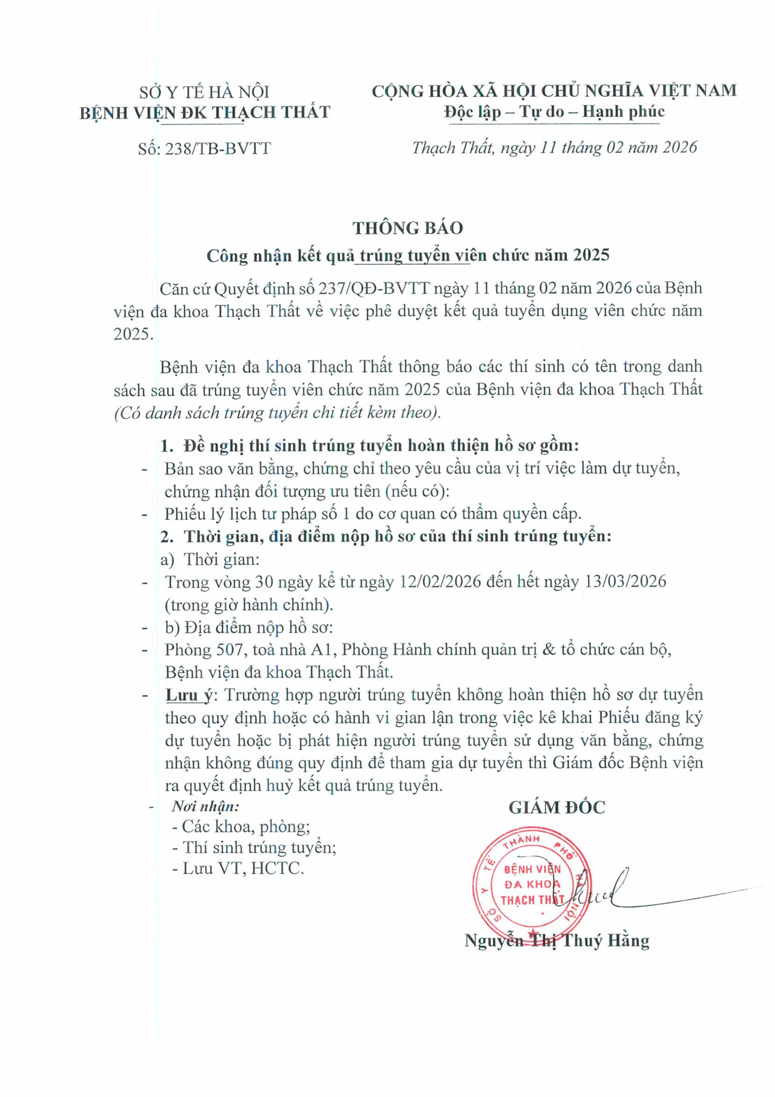 Thông báo kết quả vòng 2 thi vấn đáp tuyển dụng viên chức vào làm việc tại Bệnh viện đa khoa Thạch Thất năm 2025